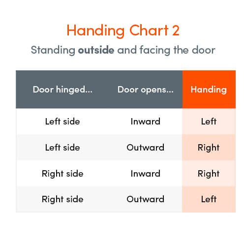 There are left and right hand options, see the handing charts 1 & 2 to ensure the correct hand is chosen.