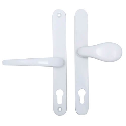 This Cego Surelock handle set has a sprung 70pz internal lever handle and a 92pz external moveable pad on a 245mm x 30mm backplate. Available in white only.