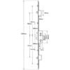 Centres are positioned at 62mm and 92mm with the top spindle being 122mm from the bottom of the case. Single spindle locks have a round hole where the second spindle would usually be located. The gearbox is pierced to accept a bolt through fixing 19mm from the top spindle, and the slot above for fixings is 42mm above the spindle.