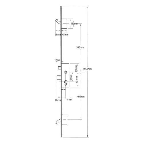 Multipoint and UPVC, Winkhaus, Door Locks, Multipoint LocksWinkhaus Trulock 45/92 Latch Deadbolt 2 Hooks 20mm Flat Faceplate Lift Lever Multipoint Door Lock