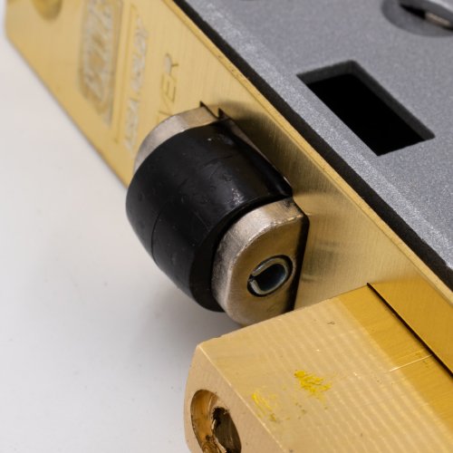 It’s 20mm bolt throw brass deadbolts contain hardened steel rollers for resistance against hacksawing.