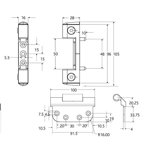 The Fab & Fix Haven composite door hinge is specifically designed for timber and composite doors. 3 Hinges can support a maximum door sash weight of 90kg. The sash part may be morticed in or surface fixed. This is the 4R16 version with a 4mm sash piece thickness and with 16mm radius corners.