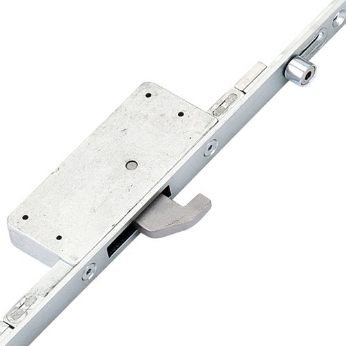 A unique multipoint lock with a hook immediately above the latch. Full length keeps are required for this lock because of the unique set of locking points.