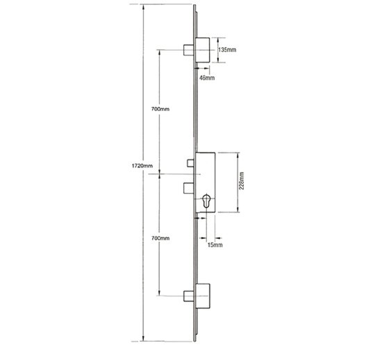 In common with other Crimebeater locks, the top hook will measure 686mm from the top spindle in the gearbox. The bottom hook will measure 714mm to the top spindle.