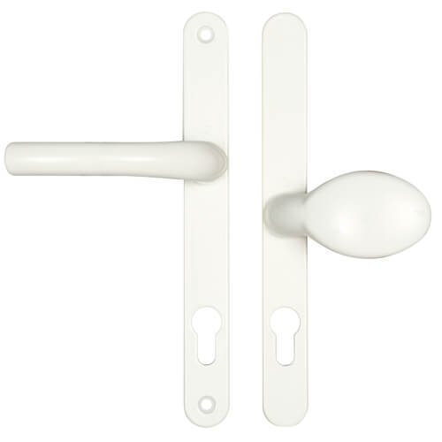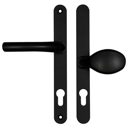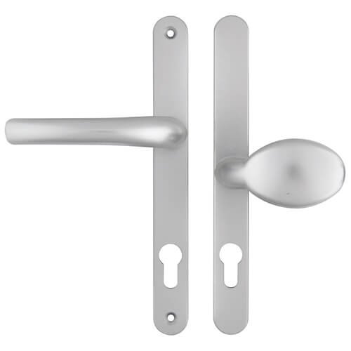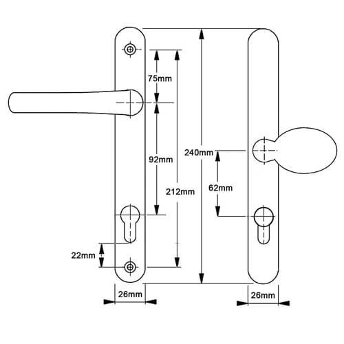 These Hoppe handles from the Atlanta range have a sprung 92pz internal lever handle and a 62pz external moveable pad. With a backplate size of 240mm x 26mm they are available in various finishes.