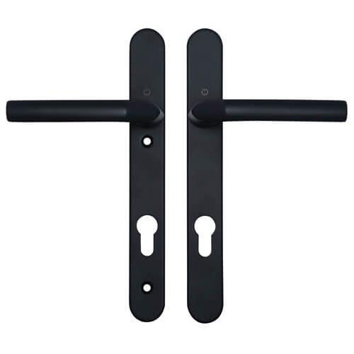 These Hoppe handles from the Birmingham range have sprung 92pz internal & external levers. With a backplate size of 245mm x 30mm they are available in various finishes.