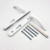 They are supplied as a pair complete with an 8mm square spindle & 2 colour coordinated bolt through M6 screws to suit door thickness 56-70mm.
