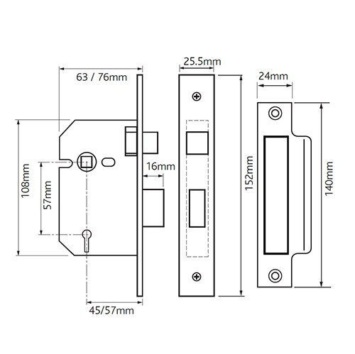The sashlock version in the Imperial 3 lever range is also made in England and features a 16mm deadbolt throw and 100 standard differs.