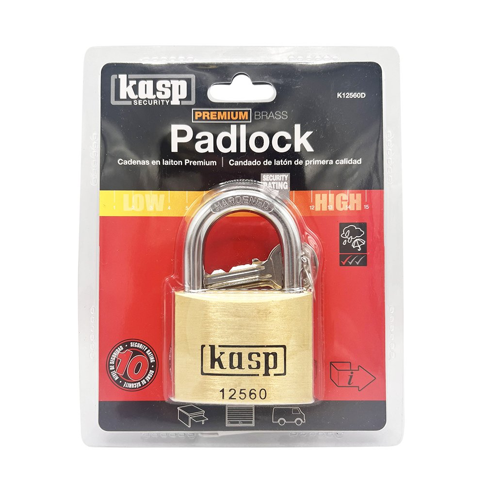 - Kasp 125 series 60mm Open Shackle Brass padlocks feature a solid brass body, paracentric keyway and anti-pick cylinder. This versatile range is available in a wide range of shackle sizes, keying and pack options.
