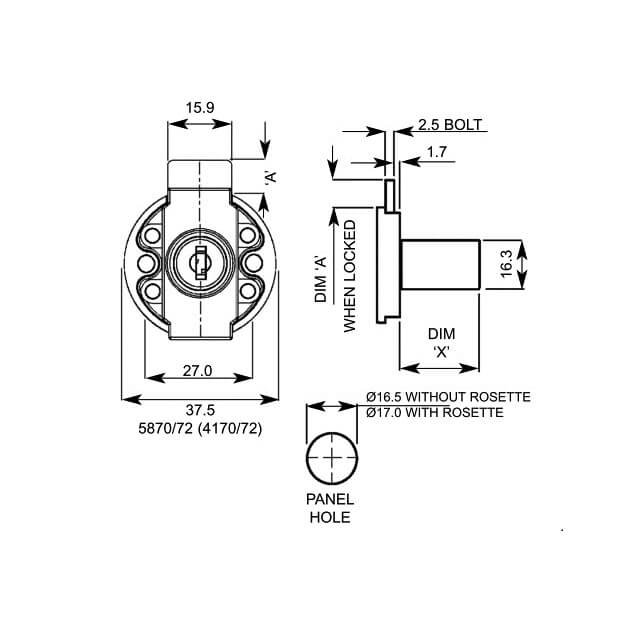 This L&F 4170 nickel plated finished desk drawer lock uses screw fix fixing.u00a0