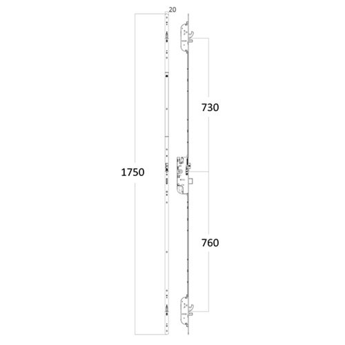 This Maco C-TS multipoint door lock features 2 Rollers, 1 Deadbolt, 1 Latch & 2 Anti Lift Bolts.