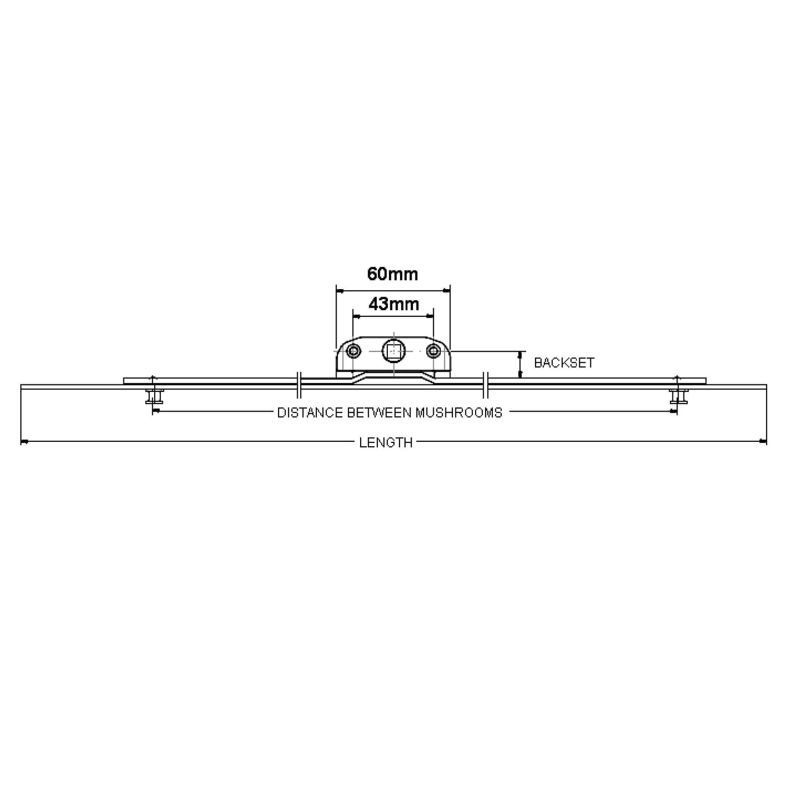 These Maco Inline Espags are non-croppable espagnolette with mushroom locking points.