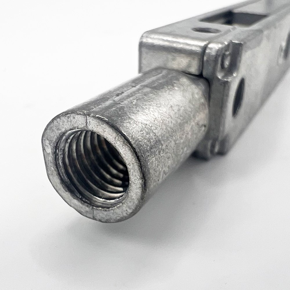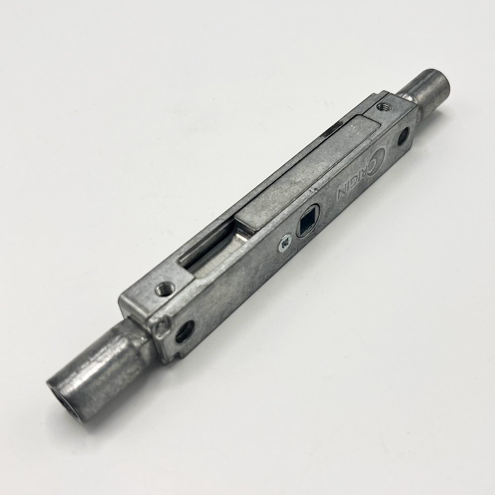This Origin Bi-Fold slave leaf gearbox is a common central lock found on Bi-Fold doors with veritcal shootbolts. The vertical Shootbolt receivers are threaded the accept the attachment rods. This unit is pierced at 43mm centres for compatibility wih most standard bifold lever handles. With a 7mm spidle follower and a cast body this unit is suitable for replacing the failed centres cases on exisitng mechanisms.