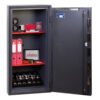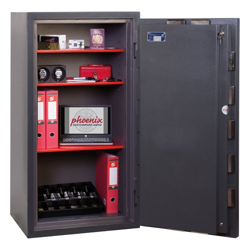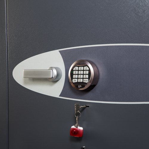LOCKING: HS9070E – Fitted with a high security VdS Class II electronic lock with dual control, master code & time delay + a high security double bitted VdS Class II key lock.