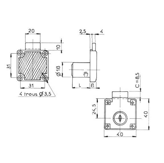 This Ronis 4500-01 Nickel finished desk cupboard lock uses screw fixing.u00a0