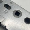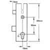 Centres are positioned at 62mm and 92mm, with the top spindle being 122mm from the bottom of the case. Single spindle locks have a round hole where the second spindle would normally be located. The gearbox is pierced to accept a bolt through fixing 19mm from the top spindle, and the slot above that, for fixings, is 42mm above the spindle.