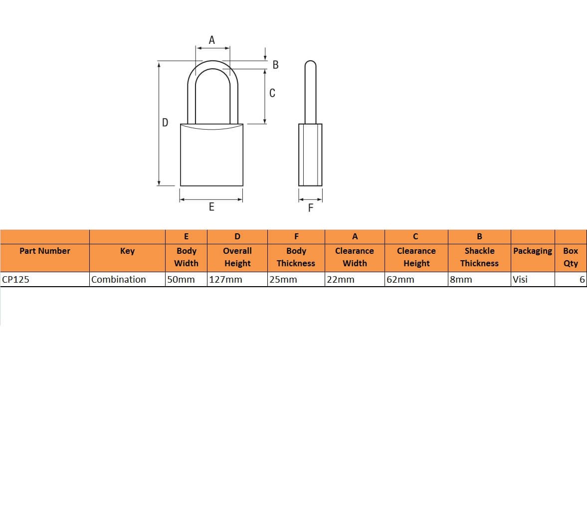 Squire CP50 50mm Extra Long Shackle Combination Padlock