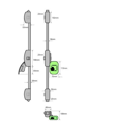 Standard devices suit doors up to 2585mm high. Longer rods are available for doors up to 3150mm high.