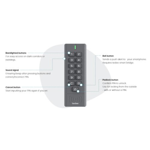 This small, wireless keypad allows entry by pin, for those users who don’t have keys or a smart device.