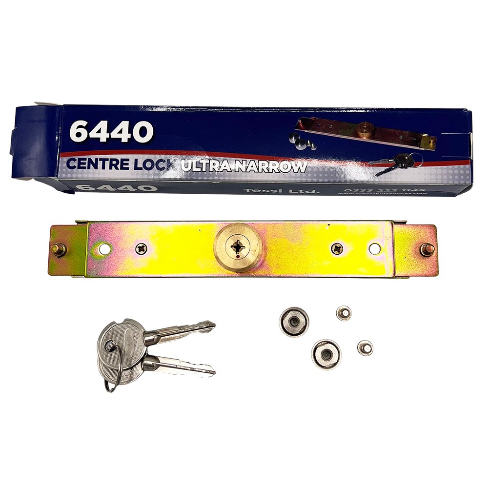 This Tessi Roller Shutter Lock central lock body is known as the “ultra narrow” and features a 30mm wide body with a 6mm thickness and 10mm cyulinder projection. Often found in modern shutter door applications. This version features a cruciform key cylinder and is supplied with 2 keys. For details sizes please see the specifications in the bullet points. Supplied with the fixing bolts spacers and nuts for the arms. Boxed and branded as genuine Tessi.