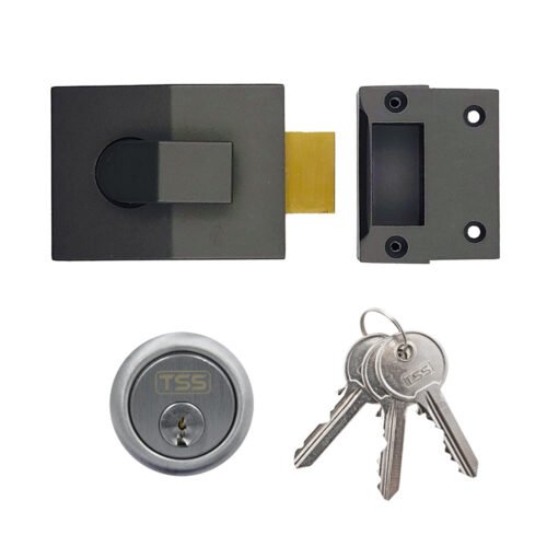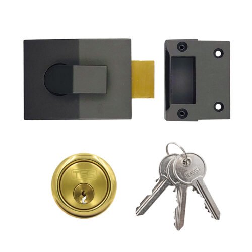The TSS 60mm Deadbolt Rim Nightlatch is part of the TSS modern nightlatch range, this particular variant is the more unusual deadbolt version featuring a manually operated deadbolt instead of a sprung latch. Ideal for securing doors where slam shut security is not required and where it is more appropriate for the user to manually secure the door by way of deadbolt.