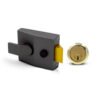 This nightlatch features a means of mechanical holdback which allows the sprung latch bolt to be physically retained within the body of the nightlatch. When this feature is activated, the latch will not engage when the door closes, therefore the door will not be secured. It is important to consider if this is a feature that is desirable for the application in question as in some circumstances the possibility of the door not being secured may cause issues. Also, some mechanical holdback devices also allow the latch to be secured in the locked position preventing access even when a key is used from outside deadlocking the door. It should also be considered if this is suitable for the application.
