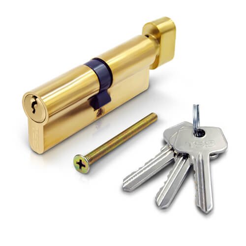 This is the TSS Euro Key & Thumb Turn Cylinder using an open profile to allow keys to be cut easily. The thumb turn is on the 1st size and the keyway is on the 2nd size.