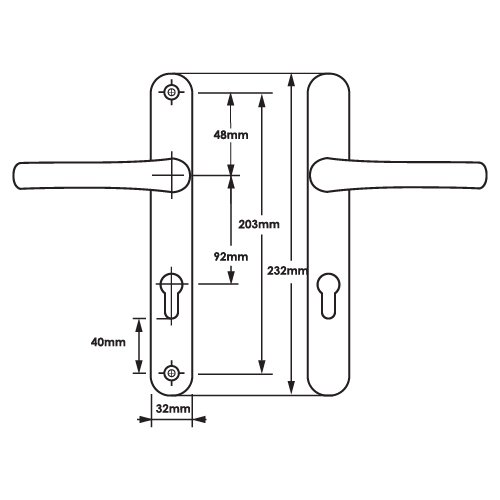 This handle has a backplate measurement of 232mm and screw centres measuring 203mm. It is a durable and reliable handle. The handles have undergone cycle testing of over 50,000 operations. The polished chrome, silver and polished brass finish has undergone salt-spray testing for over 480 hours.