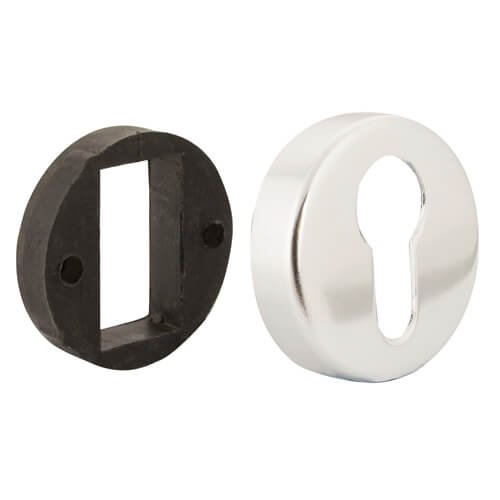 These escutcheons come in two parts with the first being screwed in place and the second concealing the fixings. Fixings are supplied as standard.