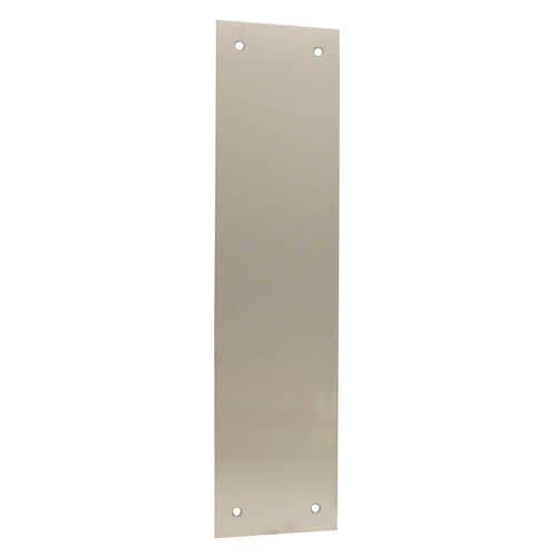 A plain face-fix screw on finger plate designed to protect doors in high use and often used in environments where hygiene needs to be maintained. With 4 countersunk fixing points to ensure screws sit flush with the plate face.