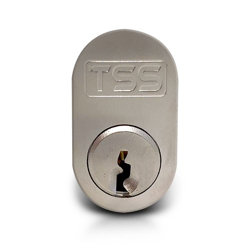 The TSS Swedish (Scandinavian) External Oval Cylinders use an open profile to allow the keys to be cut easily. This is the external side Cylinder in a satin chrome finish.