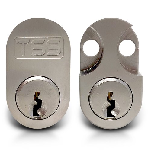 The TSS Swedish (Scandinavian) Oval Cylinders use an open profile to allow the keys to be cut easily. Supplied in Singles (Internal or External) and Keyed Alike Pairs. Available in satin chrome or brass finish.