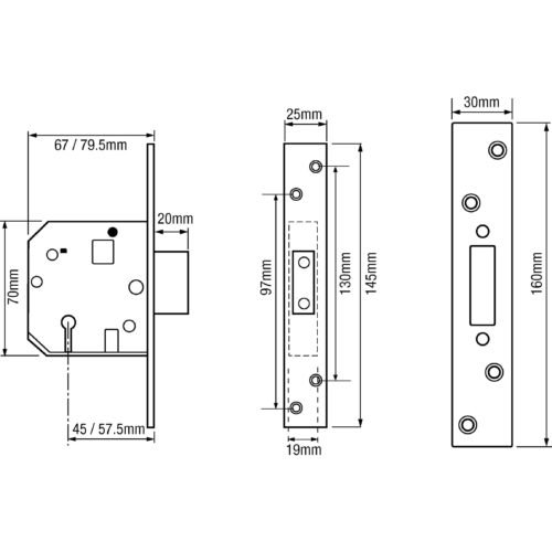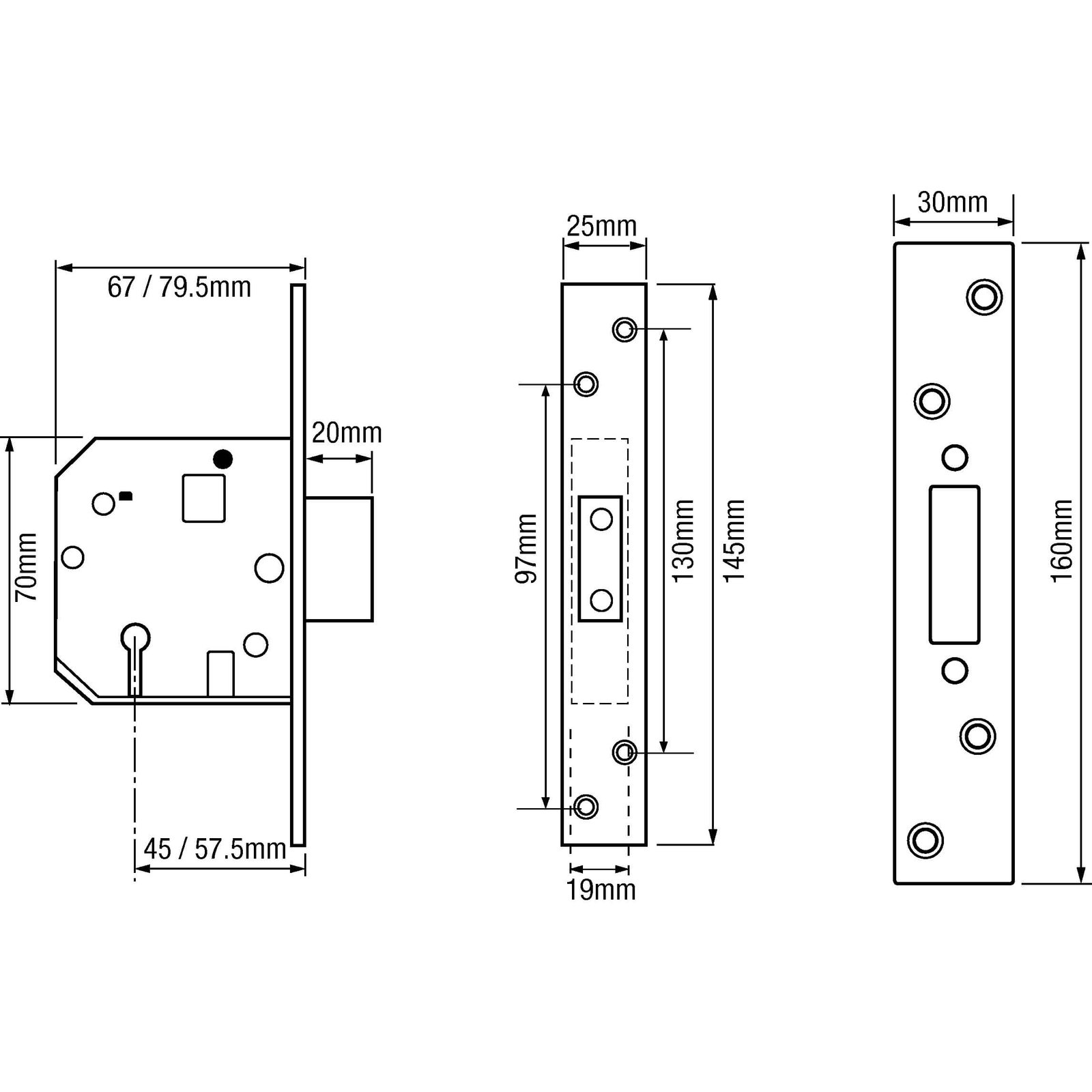 Supplied with 3 keys, a security box striking plate and escutcheons.
