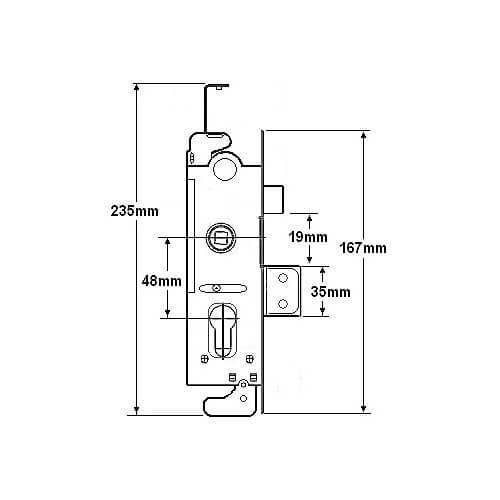 This Union L22174 Everest multipoint gearbox is supplied with a 210mm x 30mm faceplate. Strike plate, fixings and shootbolt kits are no longer available so the existing shootbolts cannot be reused. Alternatively, the case must be operated as a deadbolt only.