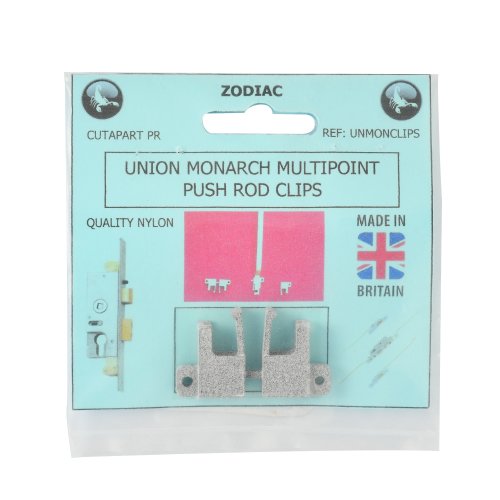These clips suit the top and bottom extension pieces on Union Monarch door locks.