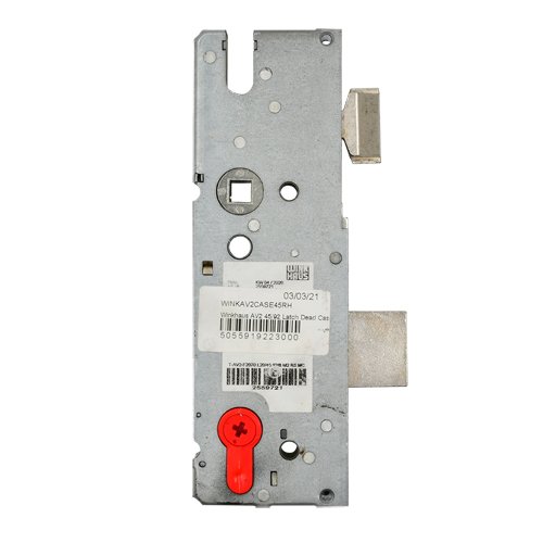 Winkhaus AV2 multipoint lock gearboxes feature an alloy sprung latch and nickel-plated steel deadbolt. Most AV2 locks also feature an independent central deadbolt, but a latch-only version of the lock is also available.