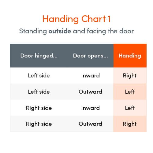 | Standing Outside, Door Hinged | Door Opens | Handing |